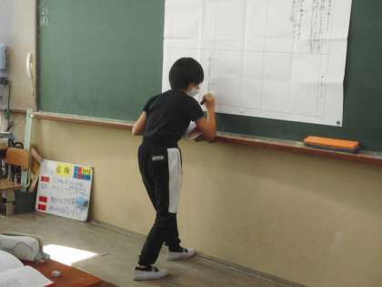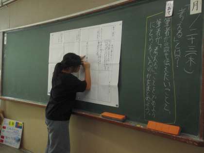 「考える」とはの学習です。自分のまとめと友達の考えを比べながら、みんなで交流していきました。