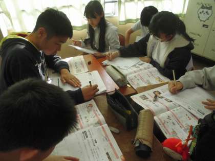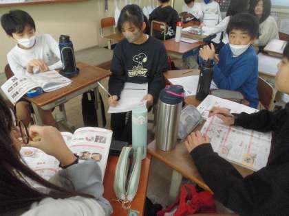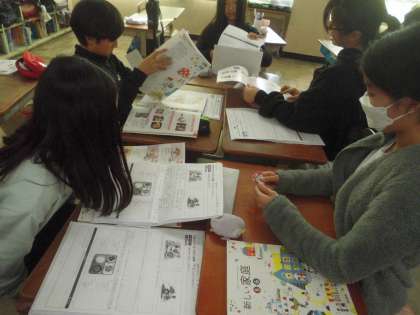 調理実習に向けてグループで役割を決めたり手順を確認したりして話し合いました。