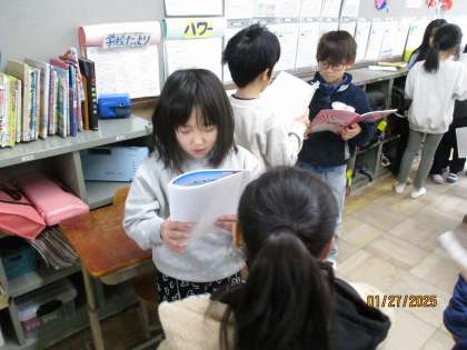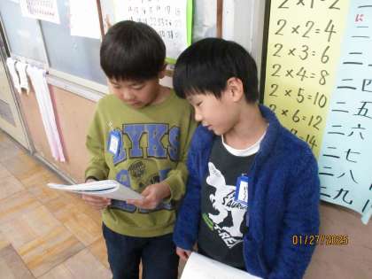 ロボットの学習をして、あったらいいなと思うロボットを考えて、みんなで交流しました。「わからないことがあれば教えてくれるロボットがいてくれるといい。」「時間を教えてくれるロボットもいい。」などと友だちと楽しく交流することができました。