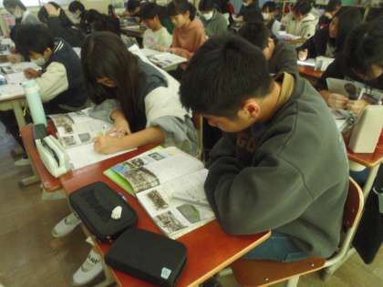 「長く続いた戦争と人々のくらし」の学習です。どのように戦争が終わったのかを予想して調べました。