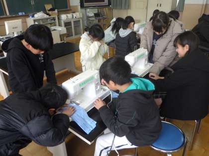 ミシンの準備からから縫いまで、友だちと協力しながら進めました。