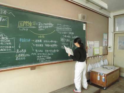 戦後の日本がどのような改革をし、再び国際社会の仲間入りをしたのかをみんなでまとめていきました。