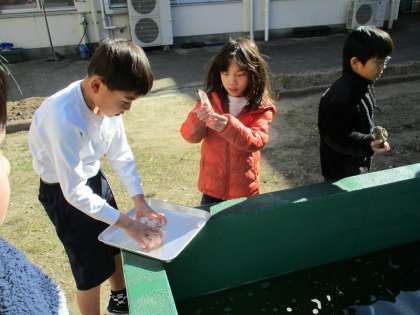 朝から「つらら見つけた!」「池の上凍ってる!」「すごい!」「宝石や〜。」と嬉しそうに教えてくれました。自然の偉大さに気付いた素敵な瞬間でした。