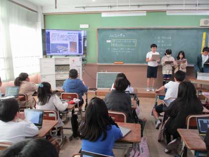 桃山南団地では、エレベーターやスロープ、生活のきまりについて外国語で紹介されていること等を見つけていました。