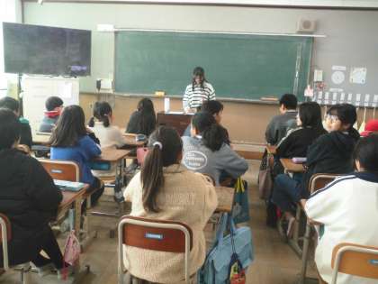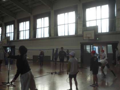 教室で1年間の活動を振り返りました。その後はいつものようにバドミントンを楽しみました。1年間仲よく活動することができたね。