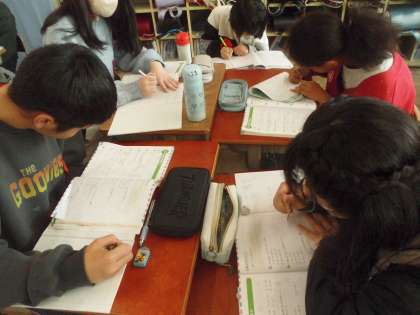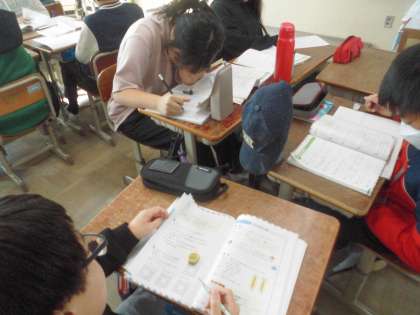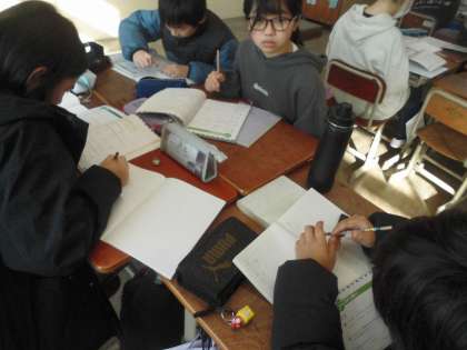 班で学習を進めていきます。「算数パスポート」に取り組んでいます。「ここ、どうやったっけ?」「この考え方でいいやんな?」「なるほど!」お互いに教え合いながら集中して取り組んでいました。