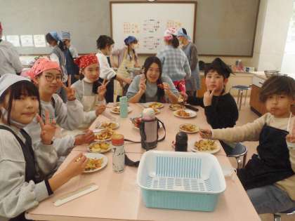 みんなで協力して美味しく作ることができました。「いただきま〜す!」