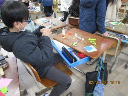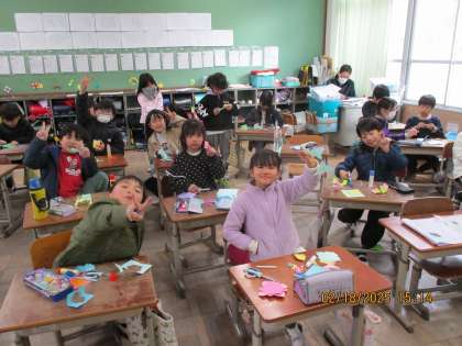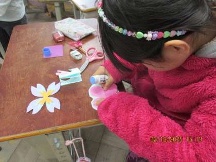お世話になった6年生に向けて、そして次の1年生に向けておめでとう掲示をつくっています。個性あふれるお花がたくさん出来上がりました。