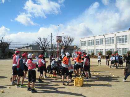 さいごの参観日です。学年でお楽しみ体育をしました。まずは玉入れ!
