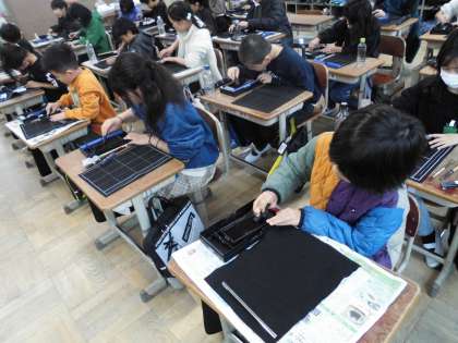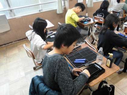 4年生最後の習字の学習では、墨をすりました。