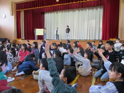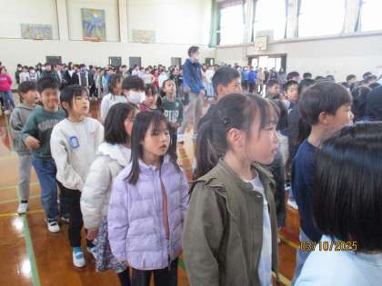 児童集会がありました。3月の生活目標は、「最後まで仲よく過ごす。」でしたが、そのために自分たちはどんなことができるのかを聞かれると、たくさん手が挙がっていましt。