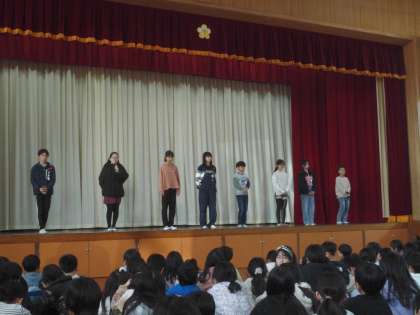 各委員会の委員長さんたちから全校児童のみんなに向けてメッセージを伝えてもらいました。