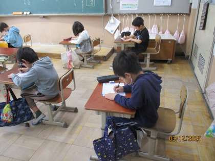 漢字小テストに取り組んでいます。テストが終わった後も、3年生に向けて復習をしてほしいと思います。