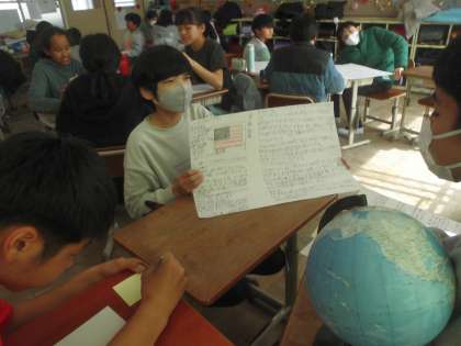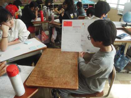 グループを移動しながらたくさんの国の様々な情報を交流し、知ることができました。その中で日本とのつながりを知り、これからも相手の国を知ることでよい関係がが続いていけばいいな、と感想を持っていました。