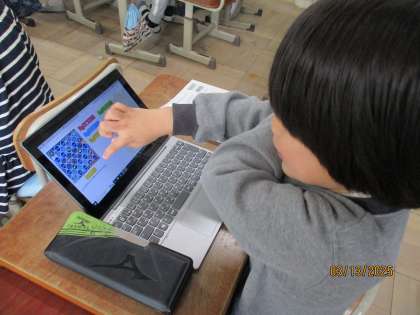 先週、プログラミング学習をしました。「宇宙人のところまで行くためには、右に1つ進んでから…」と、それぞれが考えながらプログラミングを楽しんでしました。