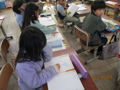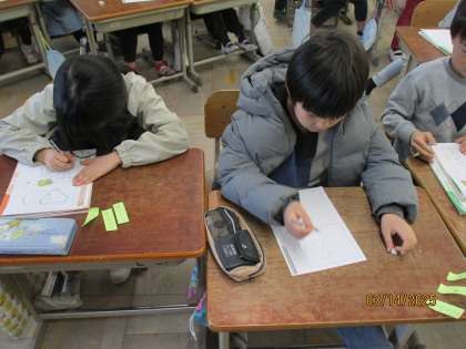 先週の道徳の学習で、2組は1年間の道徳のふり返りをしました。自分が一番心に残ったお話を思い出し、考えたことをノートにまとめることができました。