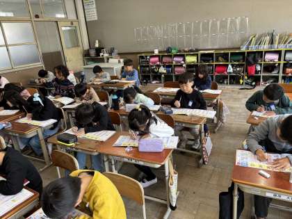 いよいよ今日から漢字の学習が始まりました。漢字の学習ではまずスキルの音読を行い、自分でスキルを進めるやり方を学びました。みんな集中して取り組んでいました。