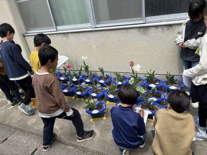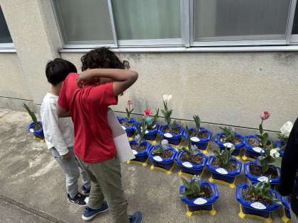 理科の学習が始まりました。今回はチューリップの観察を行いました。今までなんとなく見ていたものをじっくりと見る、そんな教科であることを知っていってほしいです。