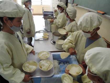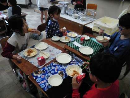 給食の時間は、協力してすばやく準備して食べ始めることができています。