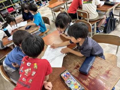 社会科では学校の周りの様子を知る学習をしています。今日は学校の周りにはどんなものがあったのか思い出しました。