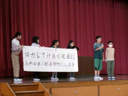 今年の児童会目標が決まりました。みんなで笑顔あふれる学校にしていきましょう!