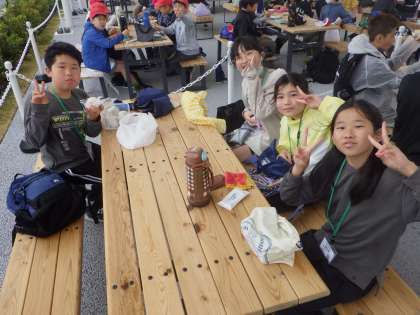 お弁当タイム!海の近くで少し寒かったですが、お腹が減って力が出なかった子どもたちにとっては最高の時間でした。お忙しい中、お弁当のご準備ありがとうございました。みんなおいしそうに食べていました。