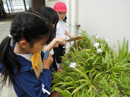 今日は虫めがねを使って生き物の観察をしました。