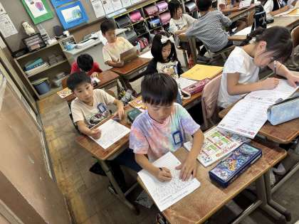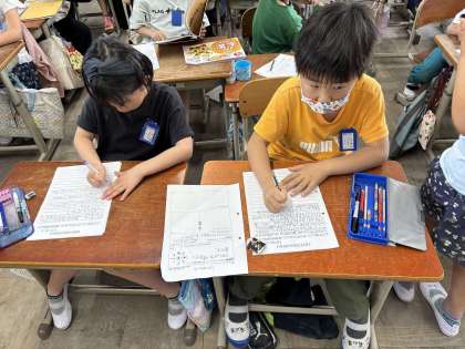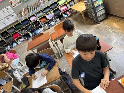 4月の振り返りをしました。できたこと、できなかったことを考え、5月に生かしていきます。紙いっぱい書けている児童が多く、ステキでした。