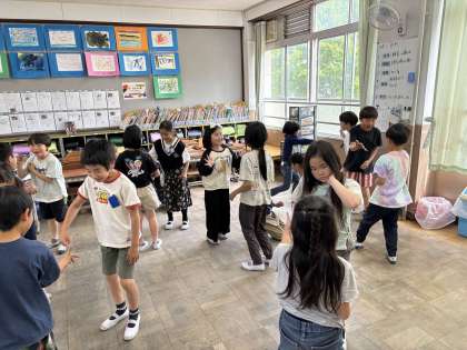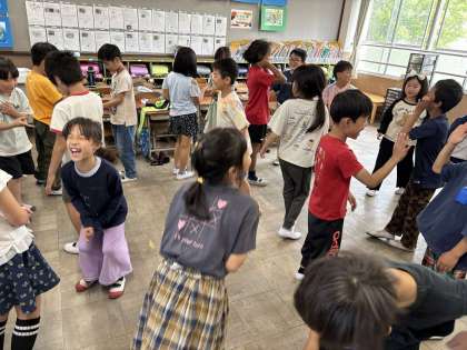 学活でプロジェクト・アドベンチャーをしました。遊びを通して、たくさんのことを考えてほしいです。