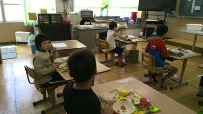 と給食の時間を楽しみにする思いを言葉にする姿も見られ、