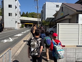 雲一つない青空!会場の桃山小学校まで、ちょっと長い道のりなのですが、みんなで出発しました!
