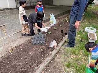 あおぞら学級 生活単元学習 あおぞら畑 苗を植えました!その1