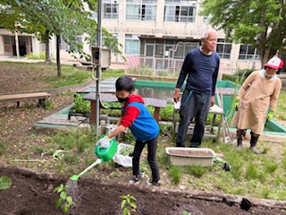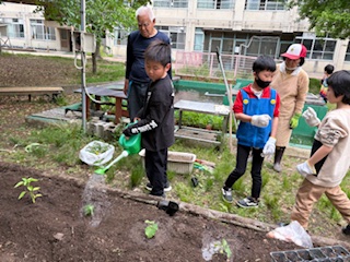 あおぞら学級 生活単元学習 あおぞら畑 苗を植えました!その2