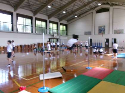 6年生は体育館で走り高跳びにチャレンジ!さすがは6年生!見事なジャンプでした。