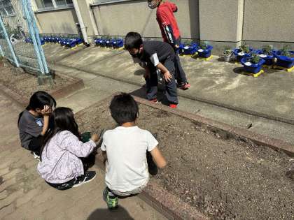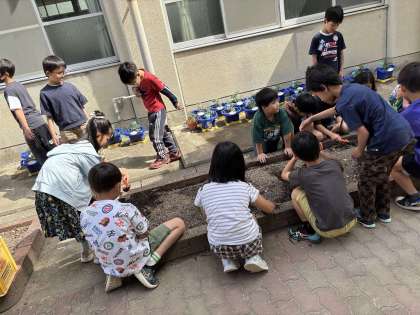 理科では植物の育ち方の学習が始まりました。自分が選んだたねを植えました。