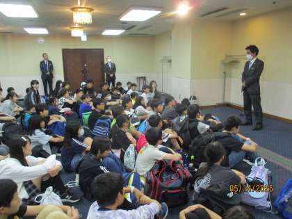 ホテルに到着しました。入館式では、立派に挨拶をすることができました。