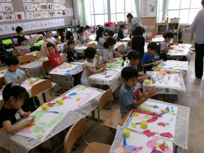 色画用紙をビリビリ・・・次は糊でペタペタ・・・さてさて,どのような作品になるのでしょうか?楽しみですね。