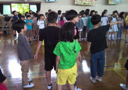 1年生を迎える会がありました。子どもたちそれぞれが考えた、〇×クイズをしました。1年生に届くような声を意識して、言いました。1年生も全校の子どもたちも、一生懸命、楽しく考えてくれて、嬉しかったです!