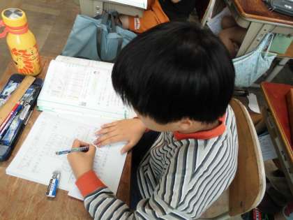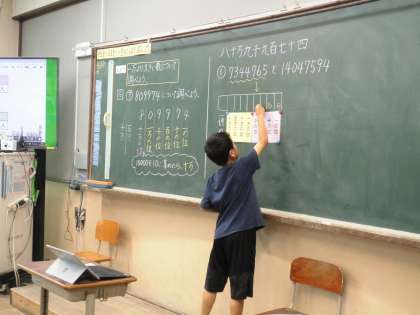 位取り表を使いながら、大きな数の書き方を練習しています。