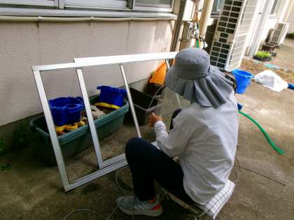 傷んだ網戸を直してくださっています。いつもありがとうございます!
