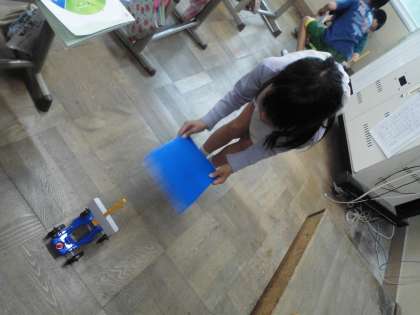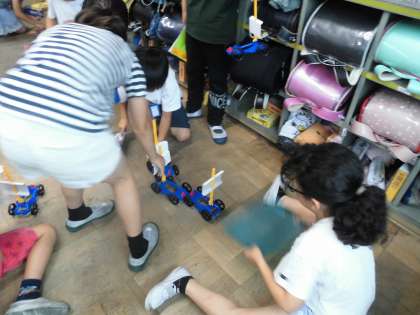 今日は風の力で車が動くことがよくわかったようです。