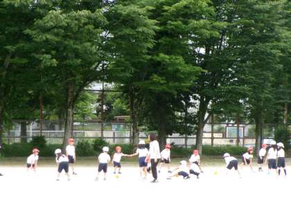 お友達と仲良く体育の学習をしていますね。暑さに負けないで頑張っていました。