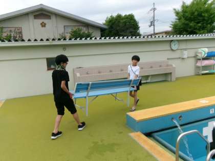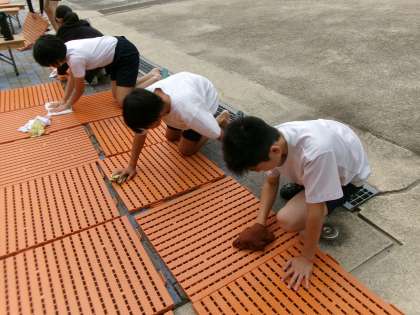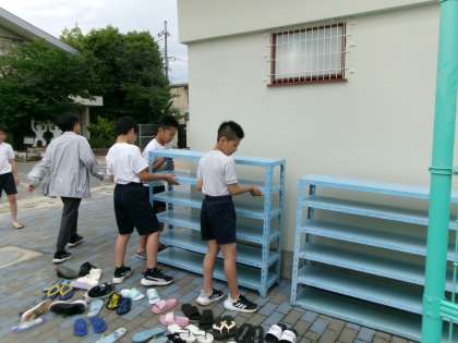 暑い中ビーチサンダルを置く棚や更衣室のすのこまで準備してくれました。6年生,本当にありがとう!
