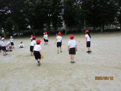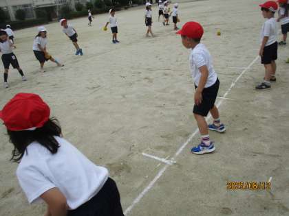 少し慣れてきたので、転がしドッヂボールにも挑戦しました。上手に転がすことができました。