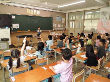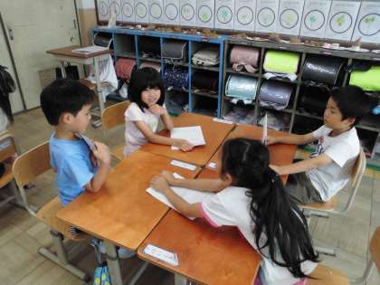 国語「つぼみ」の学習のまとめとして、動物クイズを行いました。ヒント、問い、答えの順に発表し、楽しくクイズ大会をすることができました。