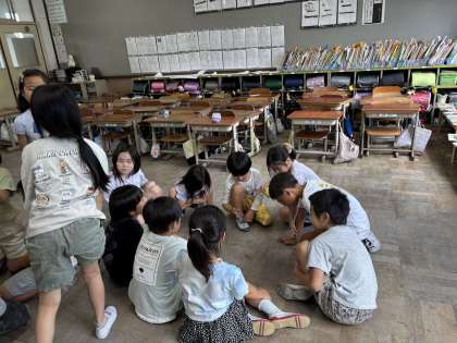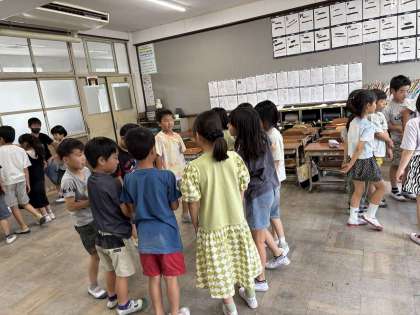 プロジェクト・アドベンチャーを行いました。今回した遊びは「ワープスピード」です。できるだけグループでボールを回す速度を速めるためにはどうすれば良いのかを考えることができました。