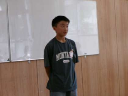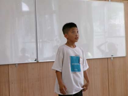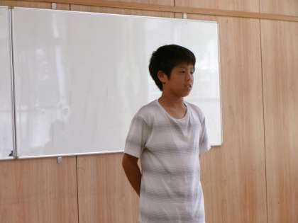 いつもの体育館での集会とは違うのでちょっぴり緊張しながら,でもしっかりと話していました。