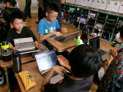 今日は5年3組の教室で国語の研究授業がありました。子どもたちは自分の考えをしっかり伝えあっていました。