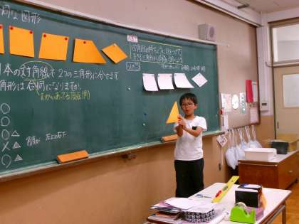 合同な図形の学習です。わかったことをみんなに説明しています。