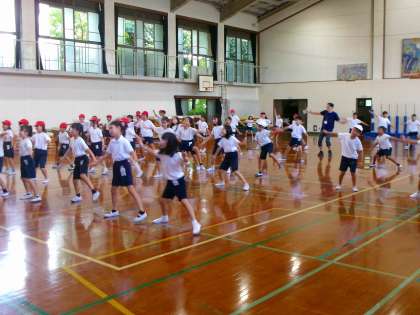 体育館から「ソーラン!ソーラン!はい,はいっ」という気合の入った声が聞こえてきました。そ〜っとのぞいてみると・・・4年生!めっちゃかっこいいやん!
